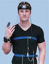 胸に数個の電極を貼り、小型軽量の心電図記録装置をつけて、24時間心電図を記録し、不整脈、虚血の有無、ペースメーカーの適応診断に利用します。装着後は自宅で普通に生活し、翌日来院し脱着します。装着中、入浴はできません。