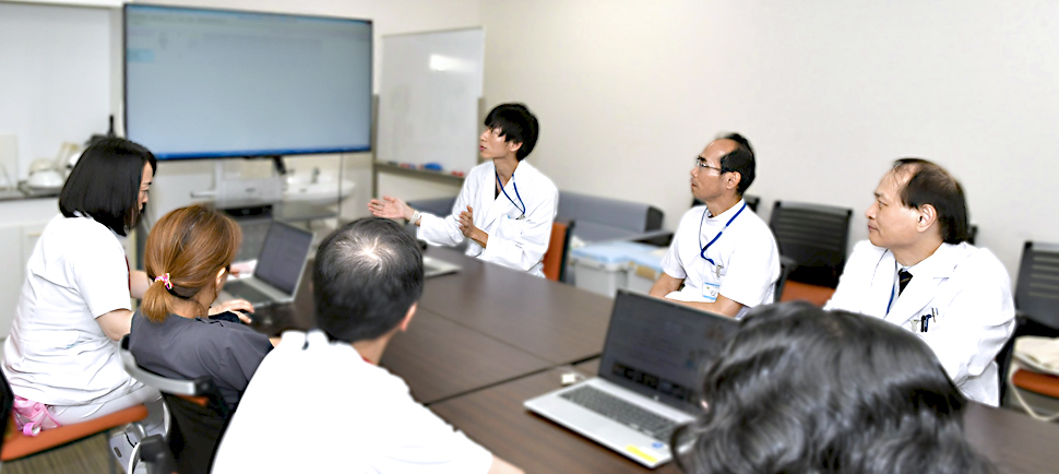 医師とともに看護師、薬剤師、検査技師などの多職種で行う、カンファレンスを行っております。